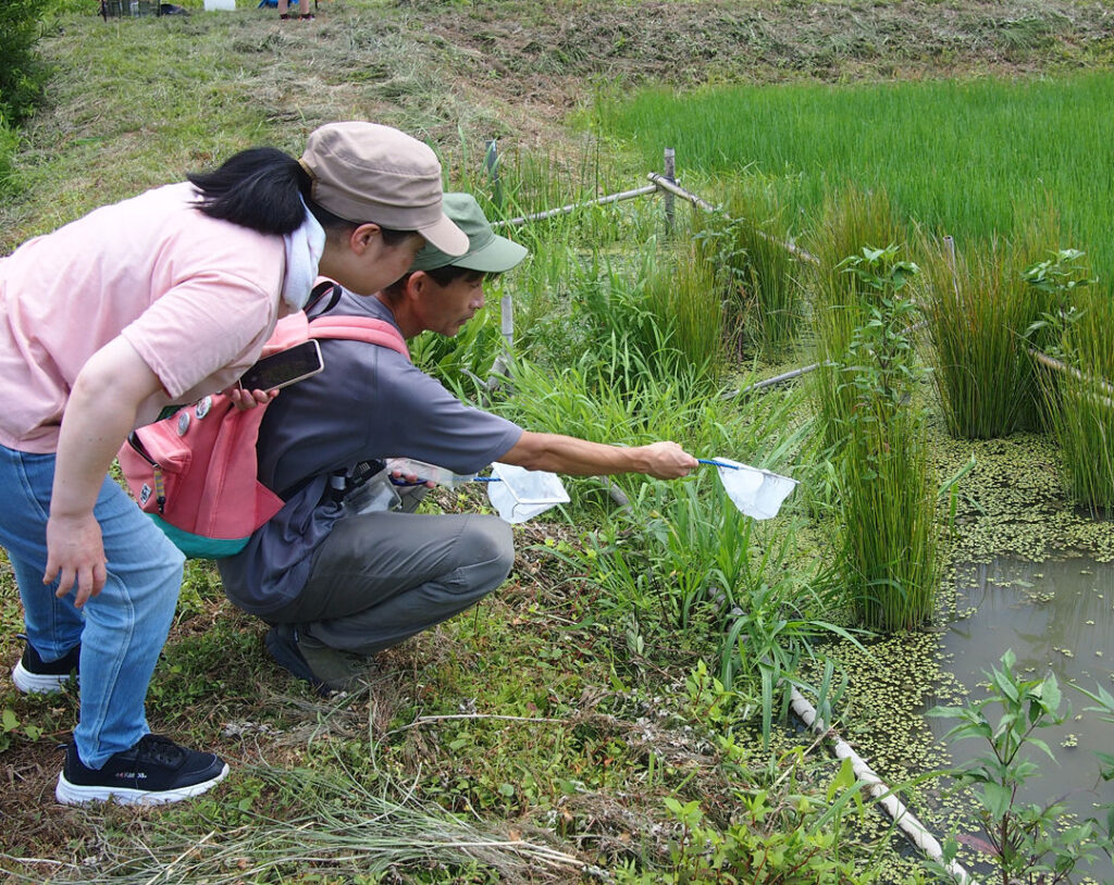 - 実際に現場で生きものを捕まえて観察してみましょう。ドジョウ、ヤゴ、ゲンゴロウなど、懐かしい生きものにきっと会えます。