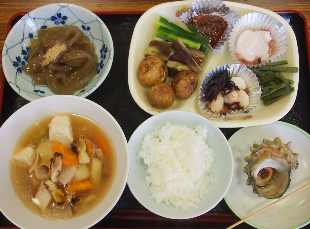 - 食材は地元のとれたての新鮮野菜、そして、目の前の海で採れた、これまた新鮮な海産物!(運が良ければサザエやイゴネリも出るかも)。