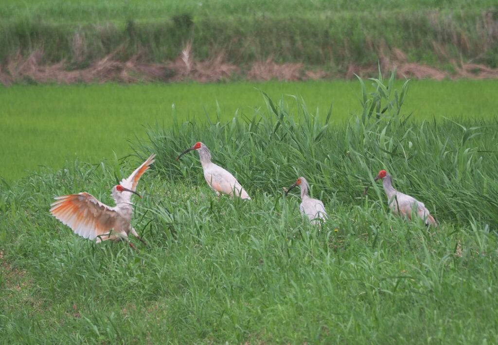 水田地帯でトキ観察