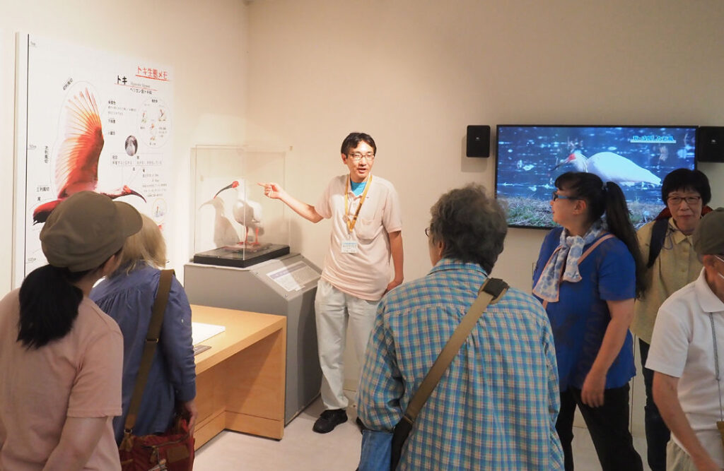 - トキの森公園を訪ね、トキガイドから詳しい解説を聞きながら、トキの生態や館内の展示物を観覧します。