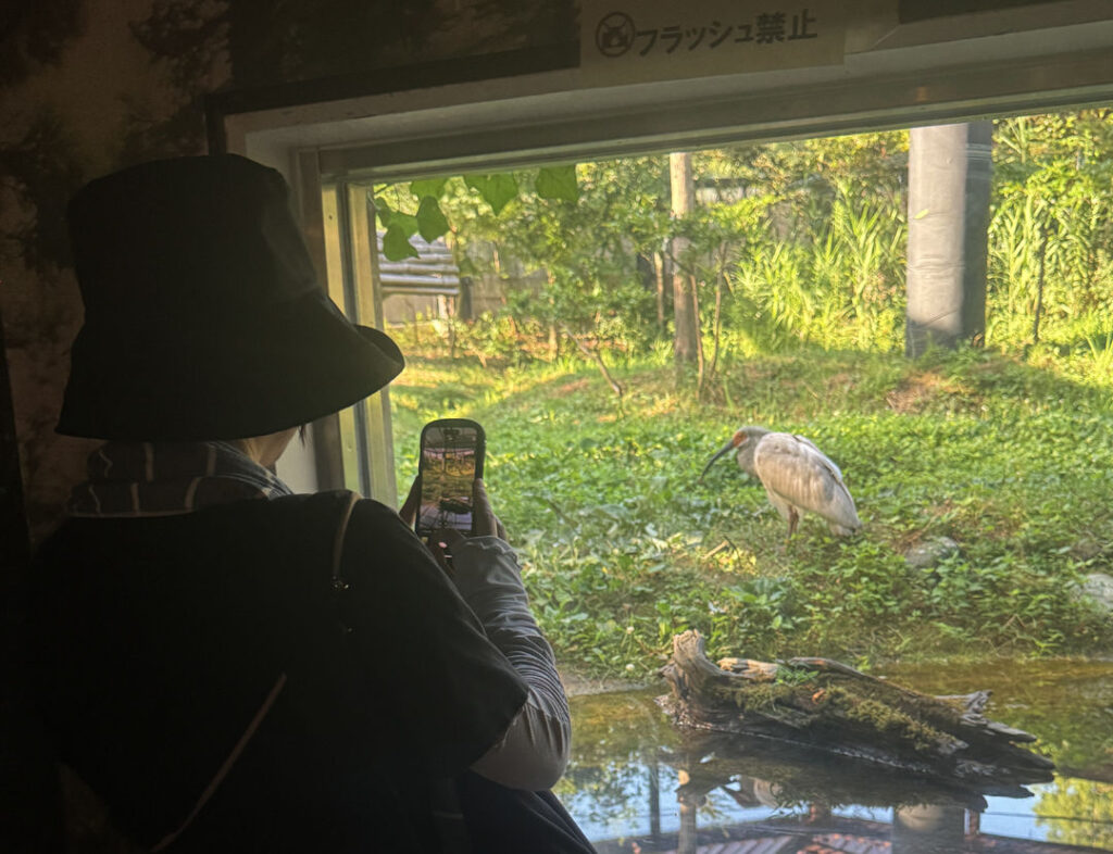 - トキふれあいプラザでは間近でトキをじっくりと観察することもできます。